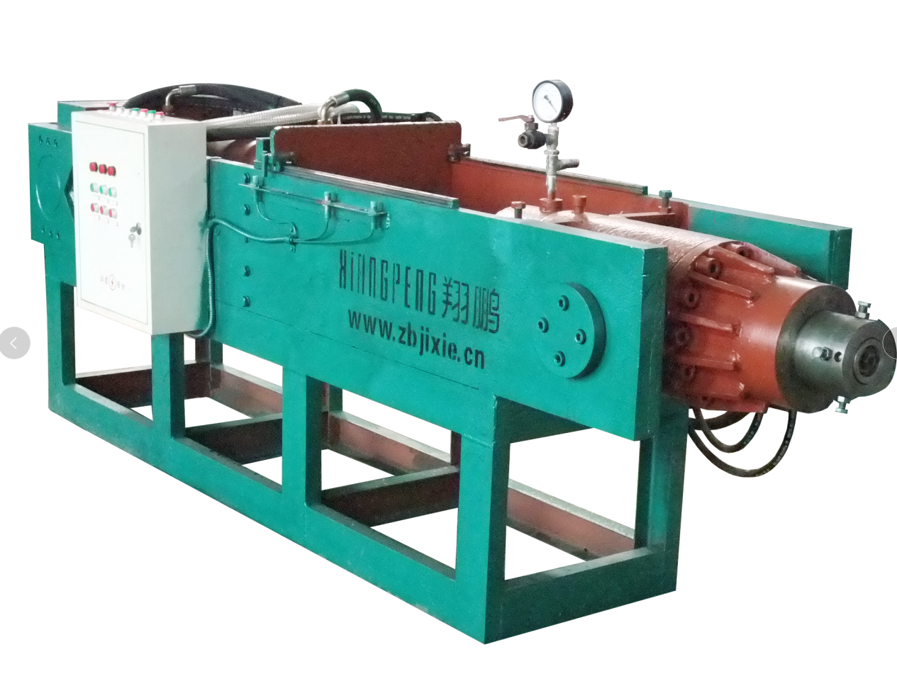 設(shè)備由主機(jī)、液壓系統(tǒng)、控制系統(tǒng)、抽真空系統(tǒng)及制品托架(客戶自配)構(gòu)成。主要特點(diǎn)是:工作壓力大(主液壓缸產(chǎn)生的推力可高達(dá)300T--1600噸以上),效率高,結(jié)構(gòu)新穎,造型美觀,操作控制十分方便,大大降低了工人的勞動(dòng)強(qiáng)度??芍谱魈蓟柚破分械母鞣N管、棒、板等型材,是一種具有高性能節(jié)能的設(shè)備。